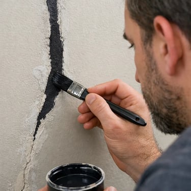 Examples illustrating wall surface preparation prior to painting, including crack repair, surface leveling, and priming to ensure durability and finish quality.